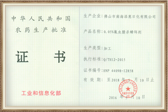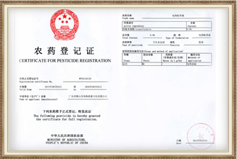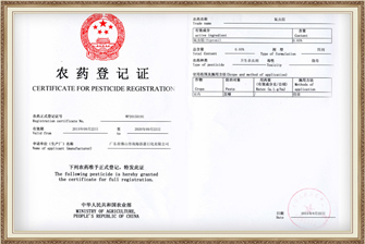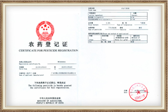 生产的产品均制定有企业标准并经广东省质量技术监督局备案。 生产所使用的原药产品均有相关许可证明文件; 所生产的产品均取得农药登记和农药生产批准证。